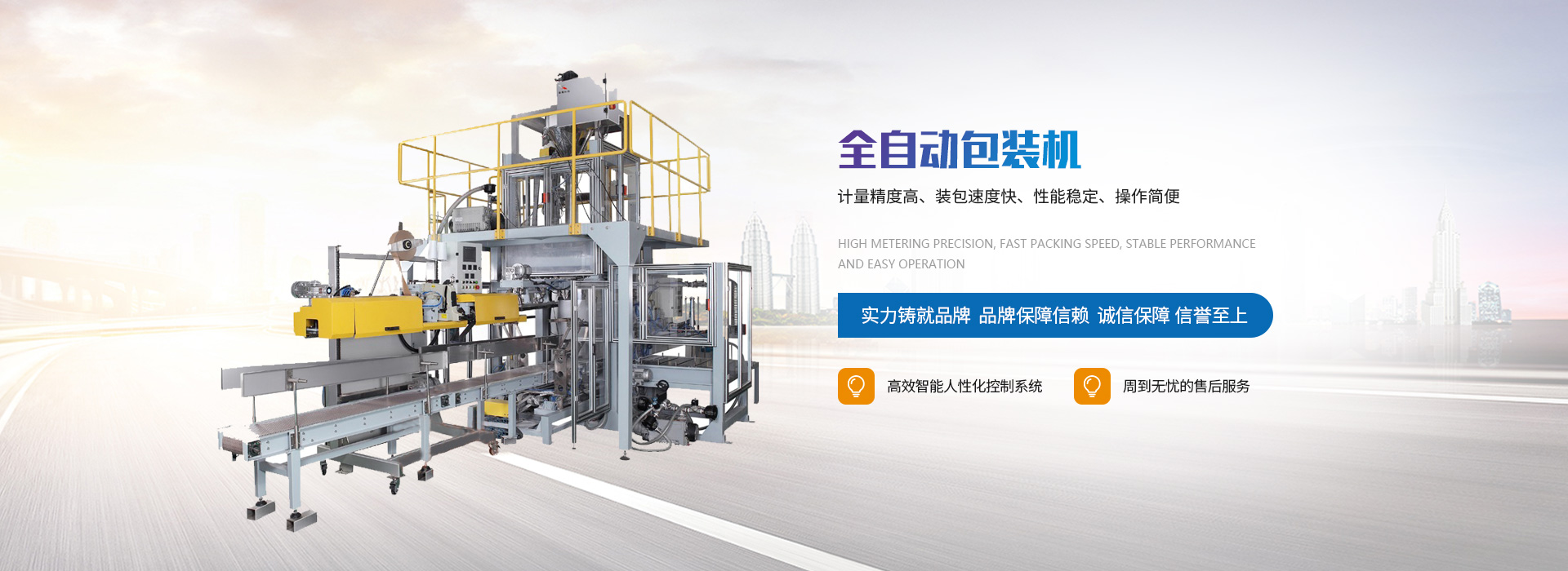 公司堅持以質量求生存,以服務求發(fā)展,始終以重合同、守信用為宗旨,提供省人,穩(wěn)定、高品質的包裝智能線,努力使產品實用、美觀、人性化:穩(wěn)定、厚實、無人化,為我國和世界的包裝事業做出應有的貢獻。